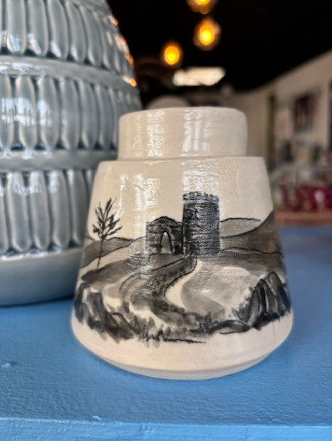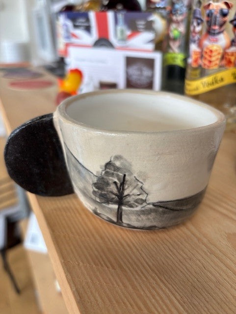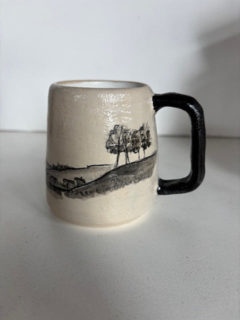 My work is monochrome and has either abstract or more illustrative and it's all inspired by landscapes I've visited. Recently I've been exploring the local area to create some pieces based on walks I've been on around Leicestershire.