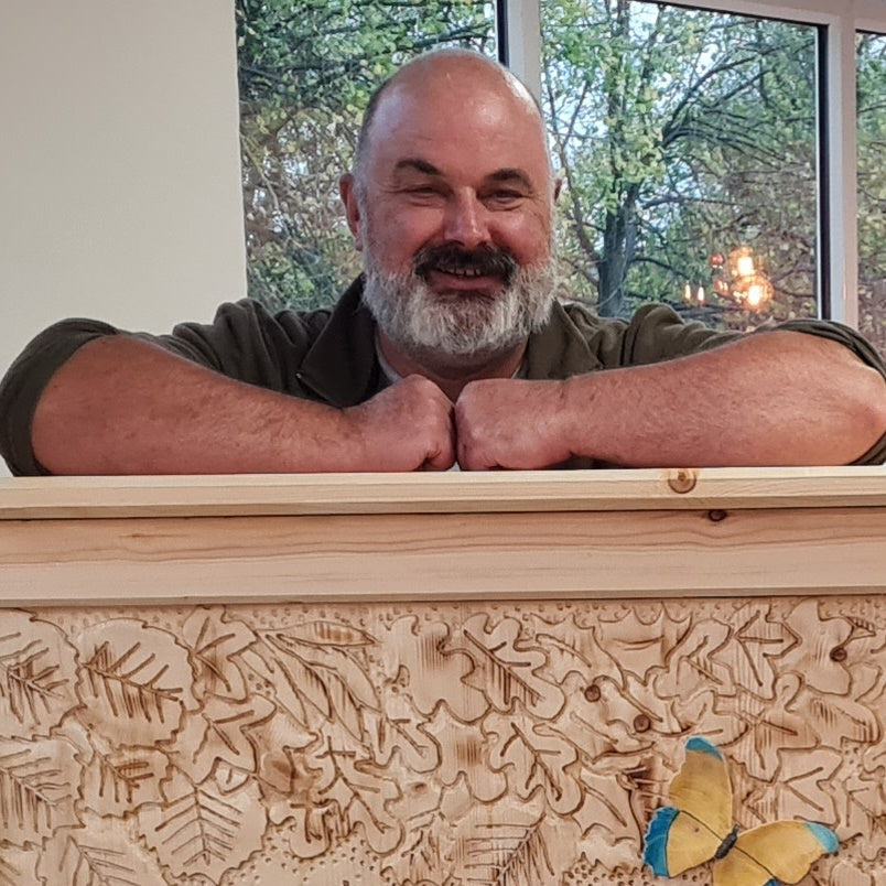 Tony combines two aspects of his work, Wildlife Conservation and Education to care for several local Ancient Woodlands, train youngsters in Land Management and teach traditional woodcraft skills. Using sustainably sourced materials, Tony makes walking sticks, gate and hazel hurdles, stick furniture, garden structures, turned and hand carved items.