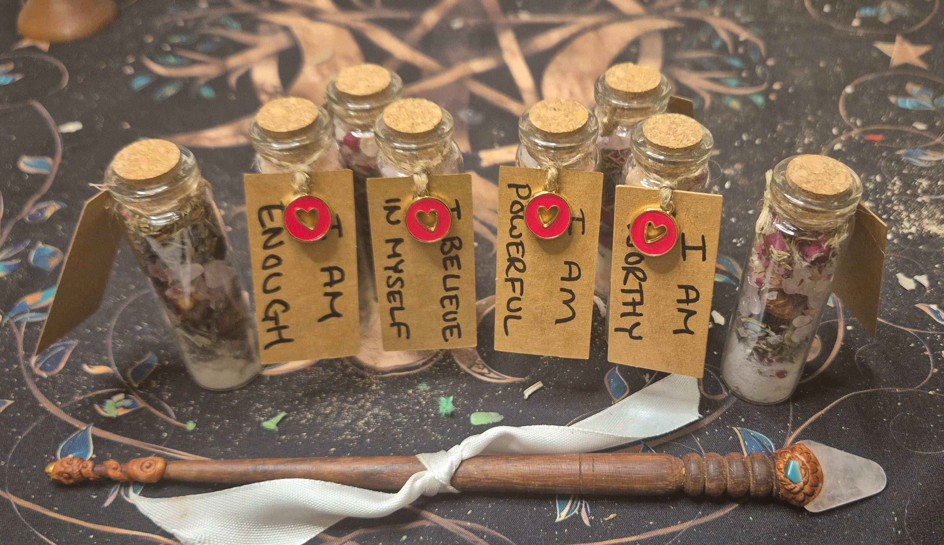 The Heart of My Mindful Magick. I craft each spell with the intention of supporting your spiritual, mental and emotional well-being. My witchy wellness creations, from anxiety shaker jars and self-love spell bottles to abundance mojo bags and gratitude offerings are more than just tools, they’re rituals for healing and empowerment. Every spell is infused with light, love and Reiki and comes with a connection process and a petition to help you set and seal your intention. This is mindful magick, gentle, purposeful and always aligned with love.