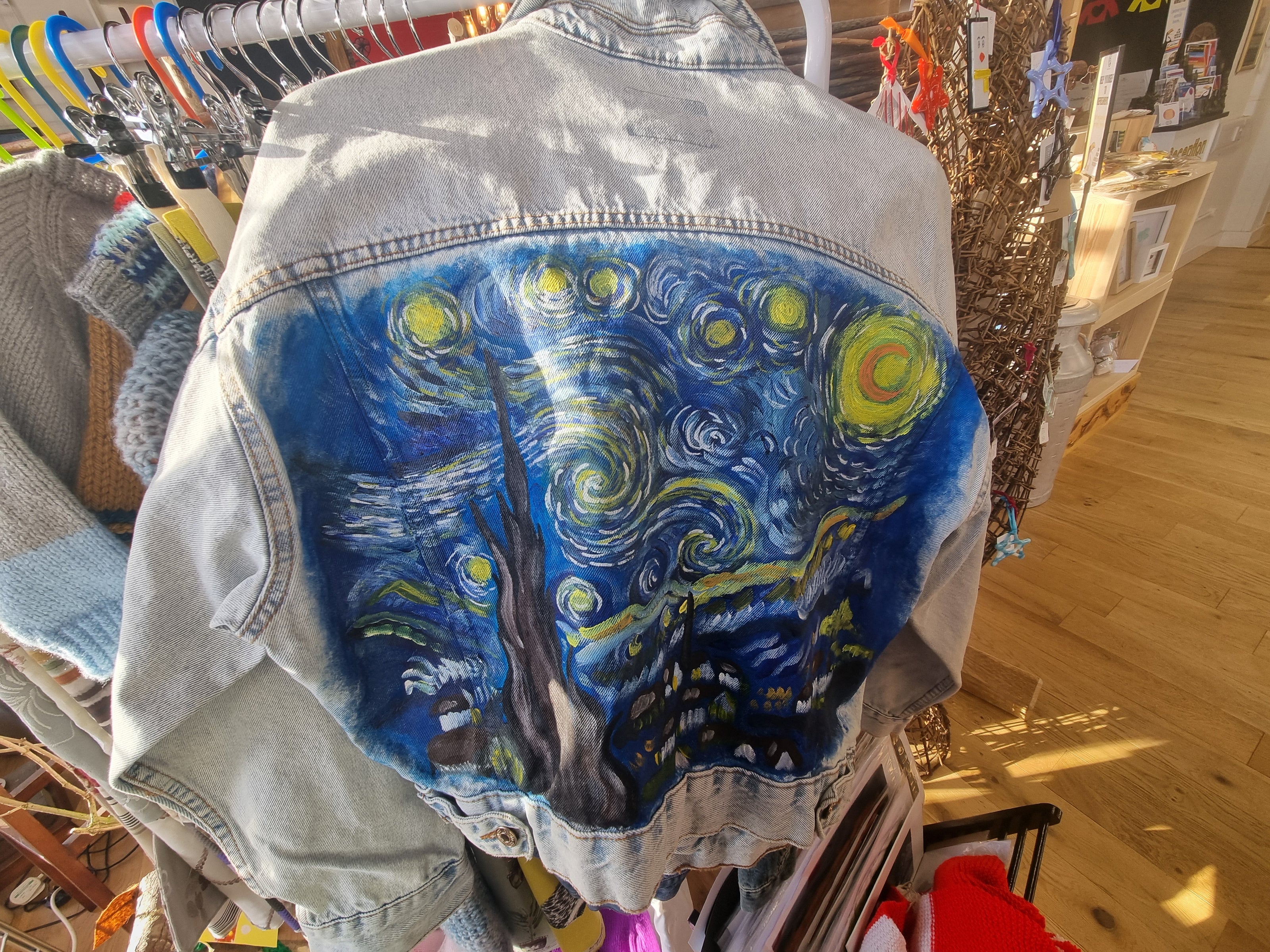 I make personalised denim jacket designs, and canvas paintings.