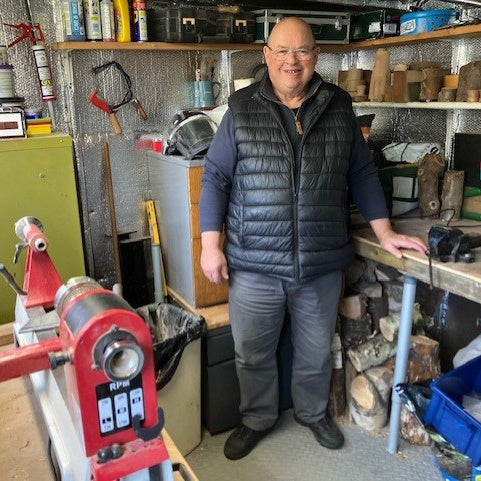 I have always been interested in any thing that is hands on. My favourite subject at school was woodwork. I started woodturning in 1996 at night school, I have been woodturning items mainly for gifts, for family, friends and others. I have worked in the army as musician, in farming, the building trade, as a gardener, and as a handyman.