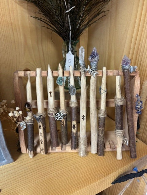 I make hand crafted crystal and rune wands, each wand has been specially made and unique with its own powers and meaning. I make these wands as a way to be able to carry a little bit of magic wherever you go.