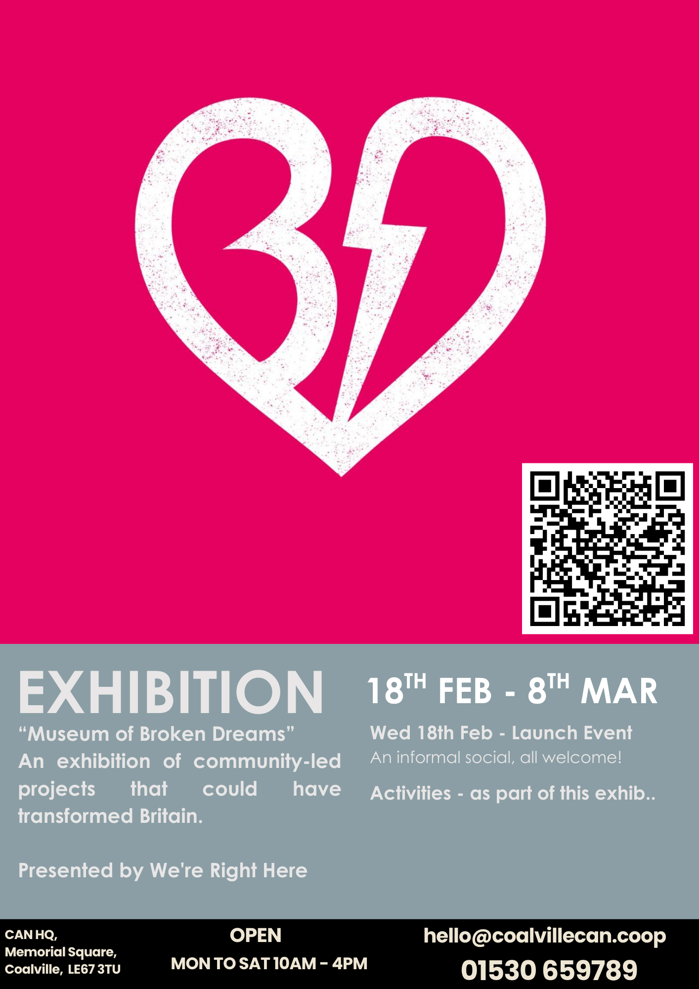 At CAN HQ, we host a variety of exhibitions in our gallery space. This includes community exhibitions based on a theme, one-off showcases or events, and private exhibitions. Take a look below at the current and upcoming exhibitions!